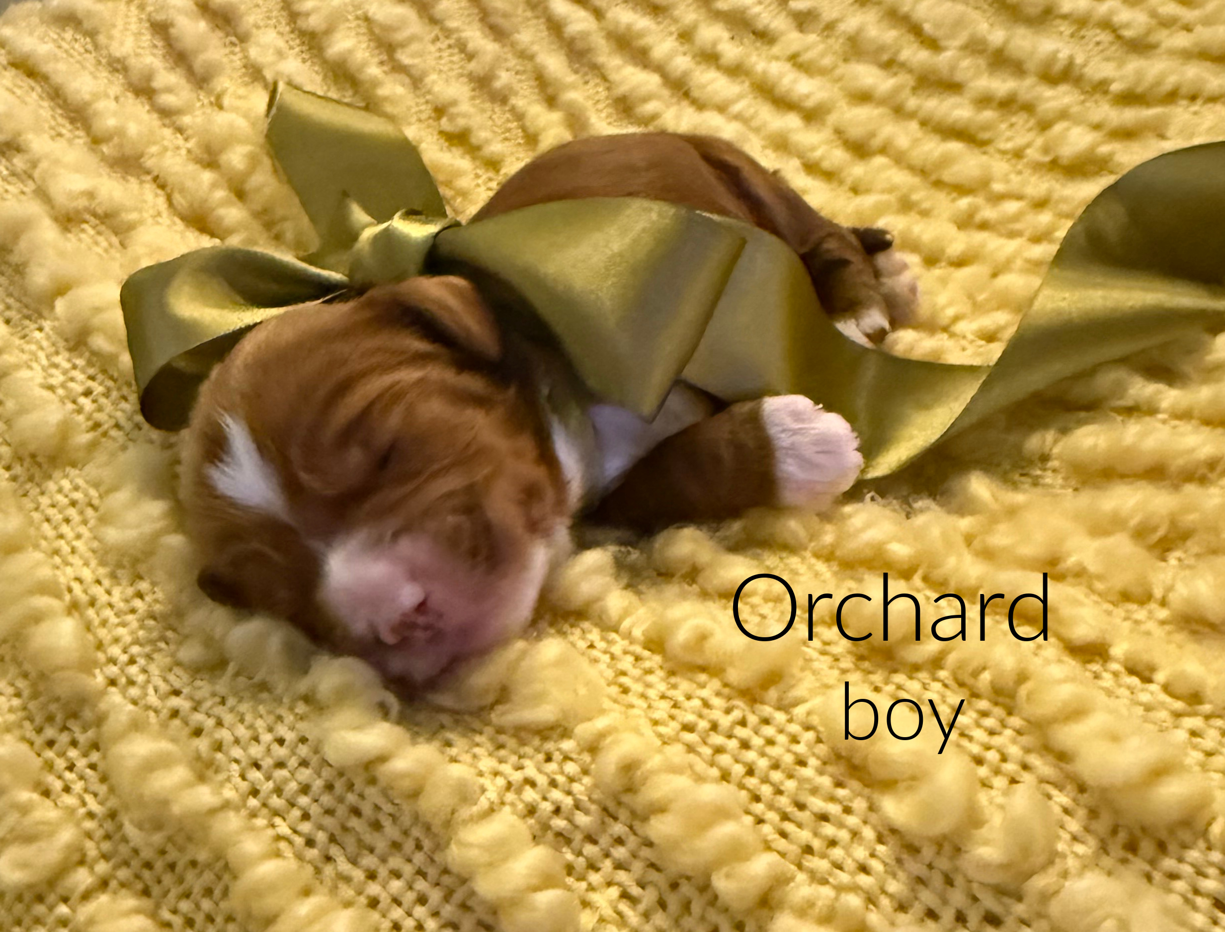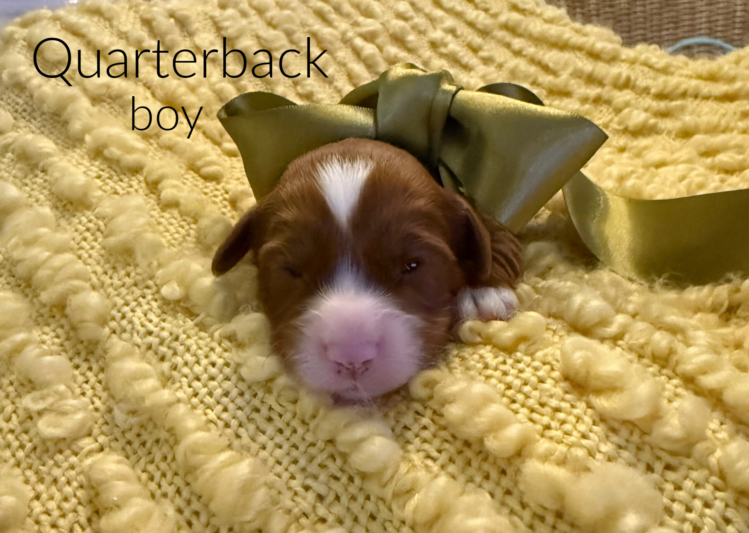 Copper is a mini at 20lbs and has passed his health testing. He has a wavy to straight fleece coat in a beautiful caramel shade. Thank you to Abbie at Berrybrook Doodles for this wonderful little boy!